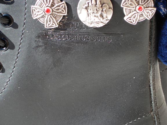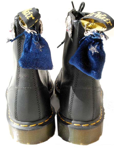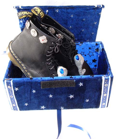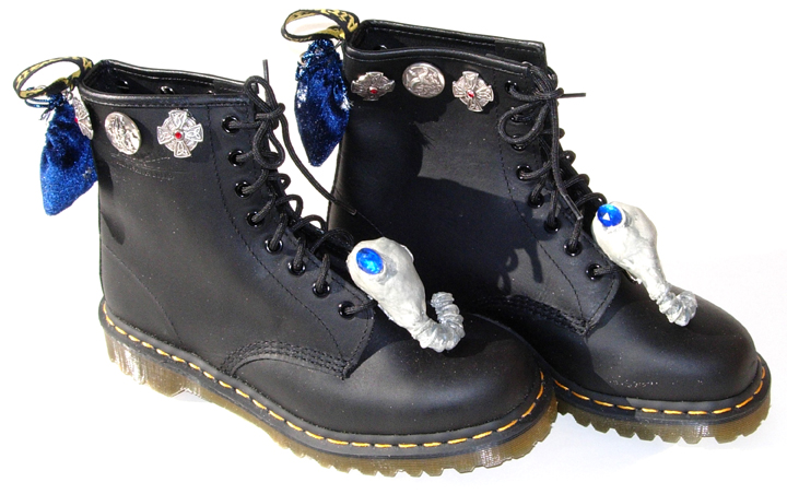 | These are the Dream Docs. They are a size UK 9 (equal to a US ladies 11, or US mens size 10), 8 eyelet lace-up. They were auctioned in Minneapolis, Minnesota, November 2004, at the Fiddler's Green Auction to benefit the Comic Book Legal Defense Fund (CBLDF) |